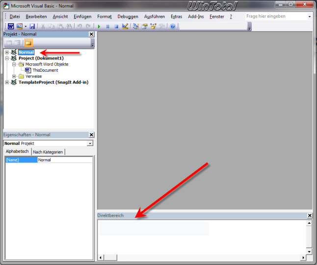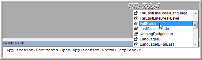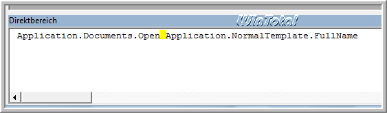 Application.Documents.Open Application.NormalTemplate.FullName und bestätigen mit [ENTER].