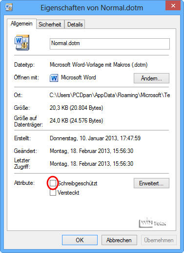 Die Normal.dot(x) (Normal.dotm) liegt je nach Betriebssystem im Verzeichnis