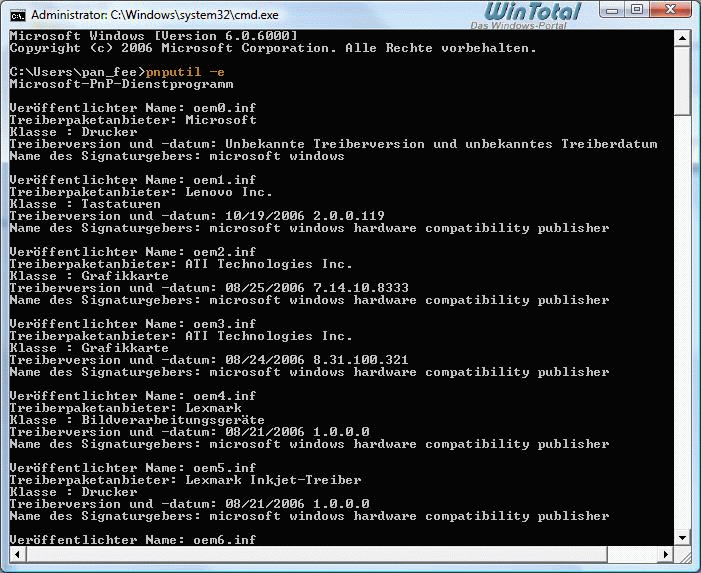 Es gibt aber eine Möglichkeit in der Eingabeaufforderung, die PNP-Treiber mit Herstellernamen anzeigen und deinstallieren zu lassen.