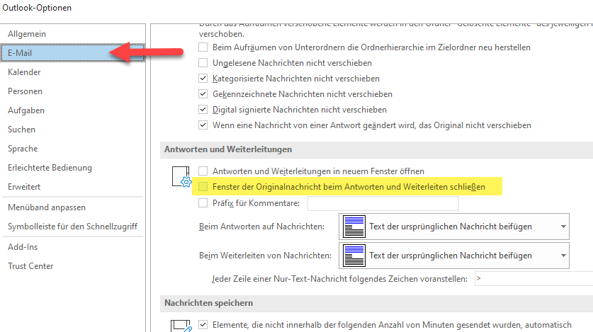 Diese kleine Änderung hat zur Folge, dass Outlook ab sofort die Fenster der Ursprungsmail selbstständig schließt, wenn Sie auf die Mail antworten oder diese weiterleiten.