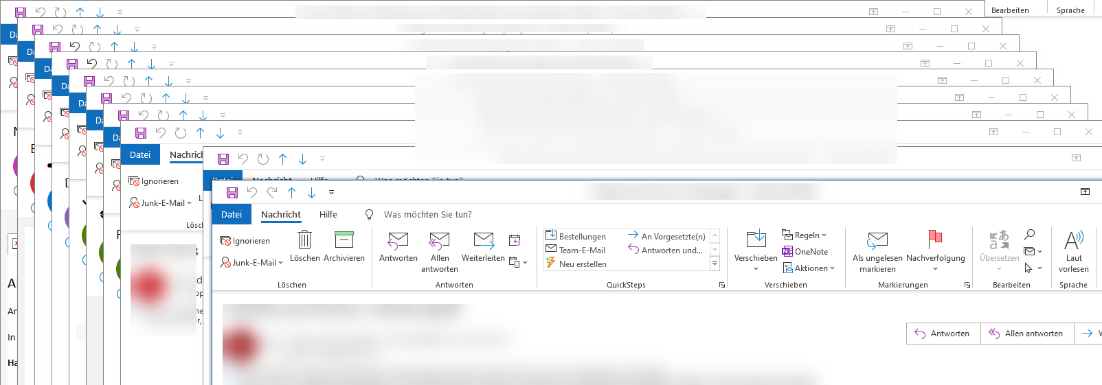 1. Viele Mails in Outlook bedeuten auch viele offene Fenster