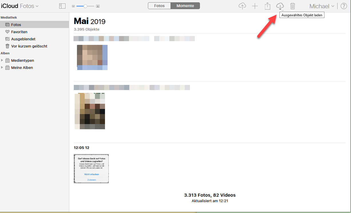 2.1. So können Sie über die Webseite von iCloud einzelne Fotos oder ganze Alben herunterladen