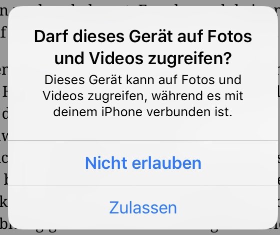 Achtung: Damit Windows Zugriff auf die Inhalte erhält, müssen Sie am iPhone oder iPad den Zugriff auch zulassen. Dazu erhalten Sie beim Anstecken des Geräts an einen PC die Rückfrage, ob dieses Gerät auf die Fotos und Videos zugreifen darf.