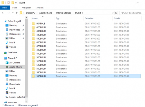 Die Fotos sind in fortlaufenden Ordnern organisiert gespeichert.