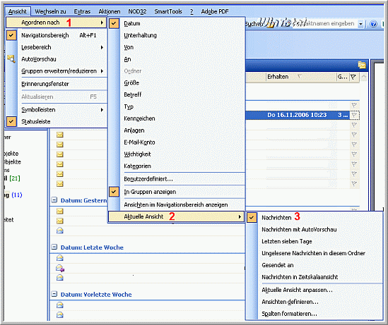 Ansicht – Anordnen nach – Aktuelle Ansicht – Nachrichten aktivieren.