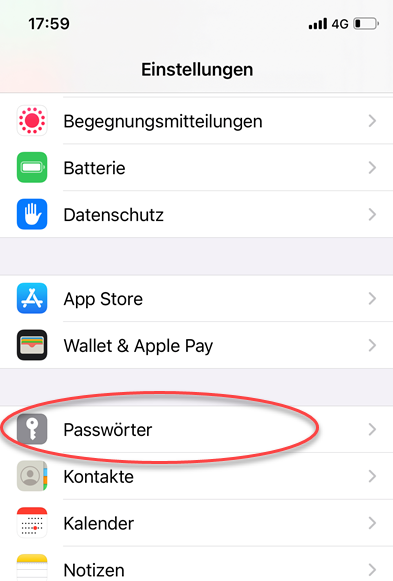 Auf dem iPhone und dem iPad ist Safari der Standard-Browser. Die Passwörter werden hier aber nicht im Browser, sondern im Betriebssystem gespeichert. Sie finden die Passwort-Verwaltung in den iPhone-Einstellungen hinter dem Eintrag Passwörter.