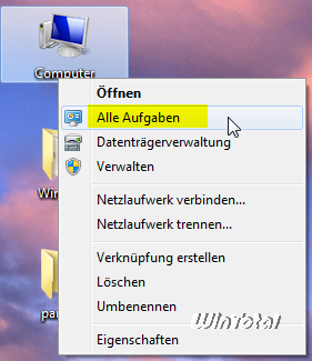 Alle Aufgaben im Kontextmenü von „COMPUTER“: