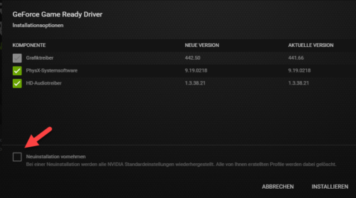 Zudem können Sie bei der Installation auch auswählen, eine Neuinstallation des Grafikkartentreibers vorzunehmen. Hierbei werden vor der Installation alle Profile gelöscht und wieder die Standardeinstellungen vorgenommen. Spezielle Programme wie der kostenlose Display Driver Uninstaller (DDU), welches Treiber von AMD und NVIDIA restlos entfernen kann, sind damit nicht zwingend notwendig.