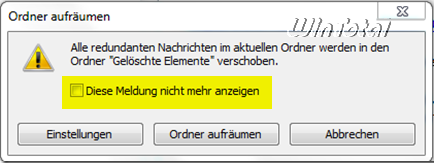 Alle redundanten Nachrichten im aktuellen Ordner werden in den Ordner „Gelöschte Objekte“ verschoben.