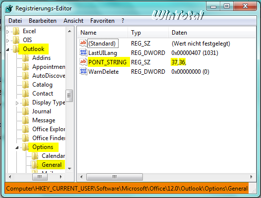 Nach Doppelklick auf den Datenwert löscht man die Nummer(n) einfach. Ist der Eintrag PONT_STRING nicht vorhanden, haben Sie keine Hinweisfenster aktiviert.