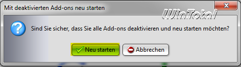 Dazu klicken Sie in der Menüleiste auf „Hilfe“ und dann auf „Mit deaktivierten Add-ons neu starten„.