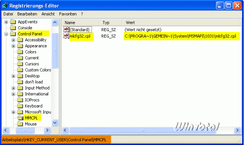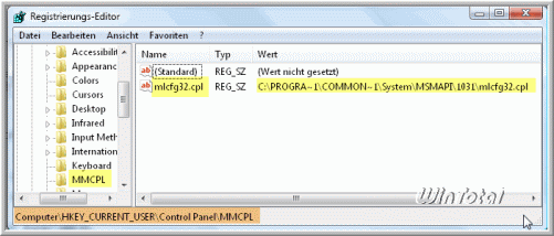 sollte der Eintrag mlcfg32.cpl im „Wert“ den Pfad-zur_CPL-Datei haben.