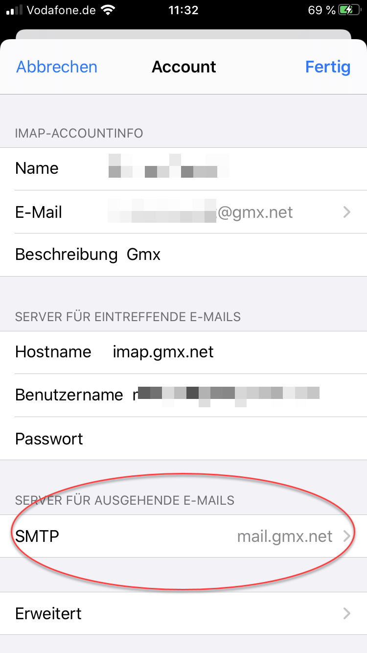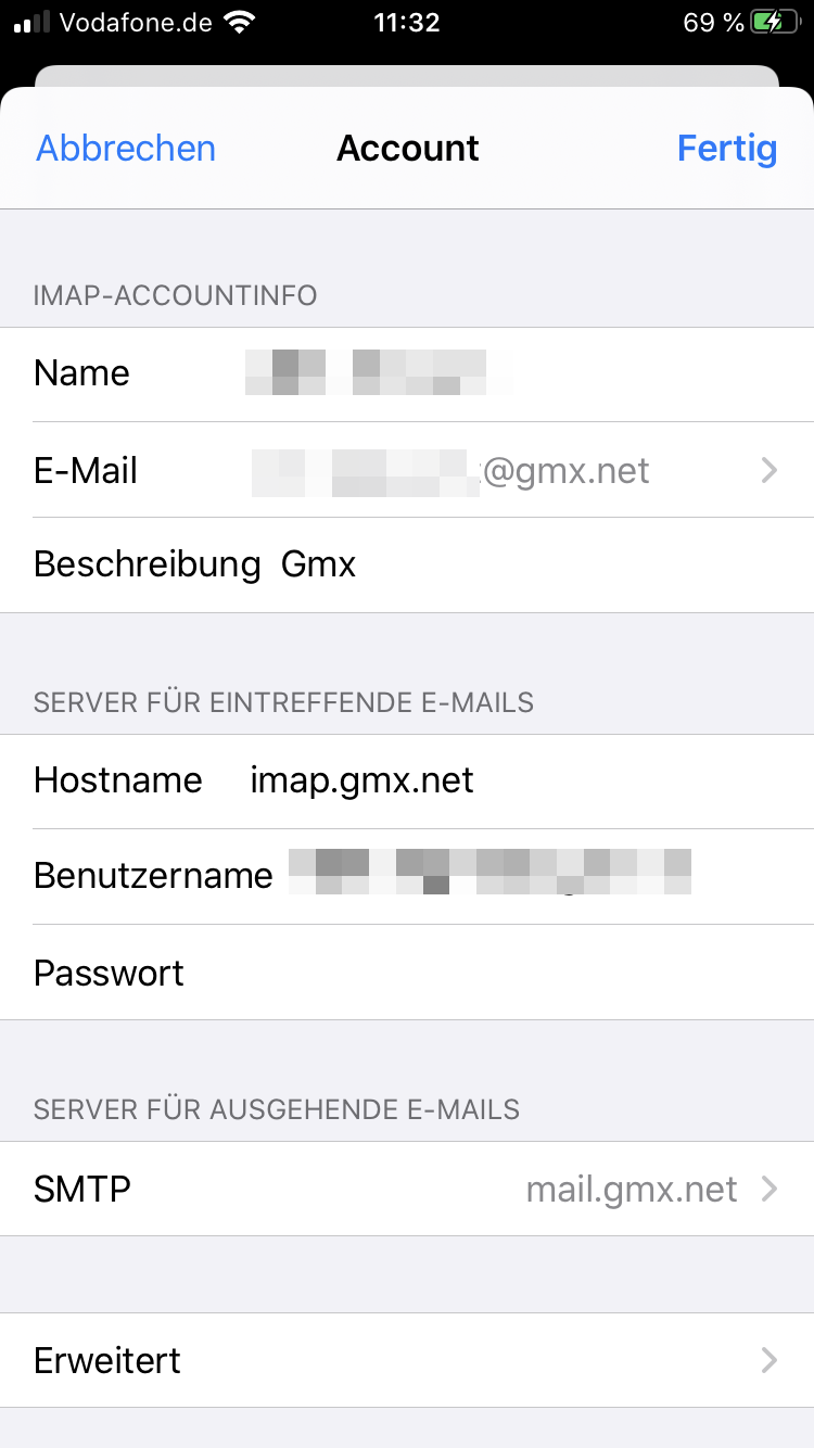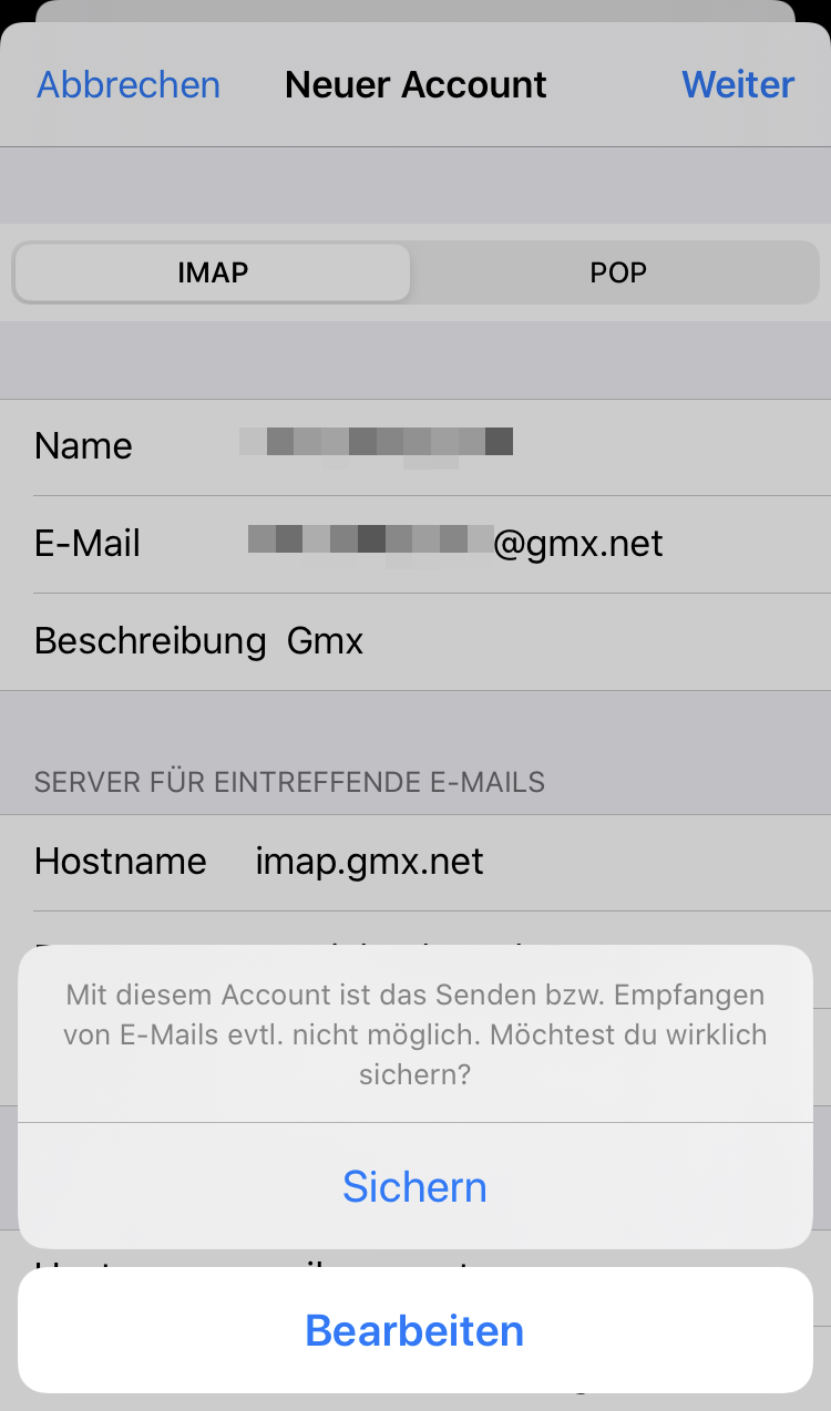 2.2. Auf dem iPhone Mail für andere Anbieter wie GMX oder Web.de einrichten