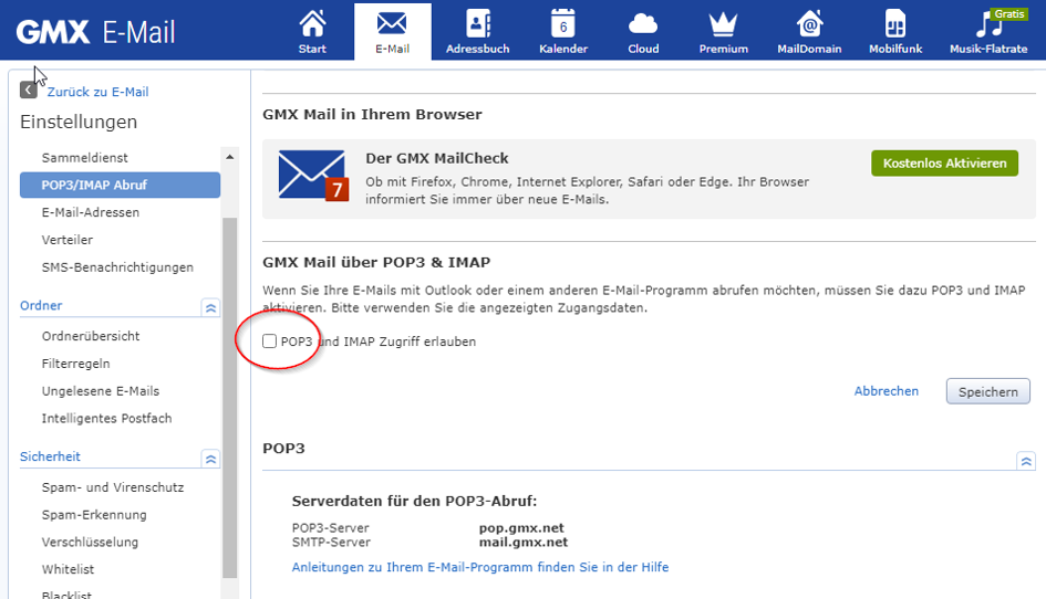 - Einige Anbieter wie beispielsweise GMX müssen für IMAP und POP3 erst gesondert freigeschaltet werden.