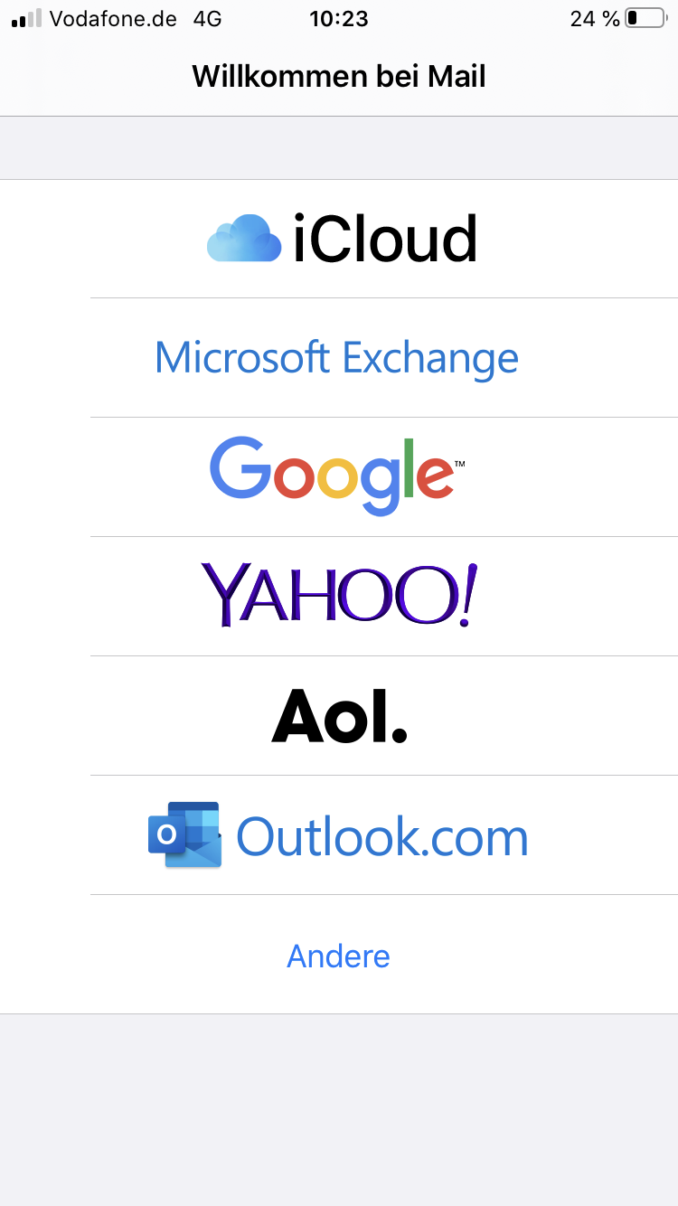 Wenn Sie ein Konto von einem anderen Anbieter wie beispielsweise GMX, Web.de, anderen kostenlosen E-Mail-Anbietern oder geschäftliche Mailaccounts hinzufügen möchten, bietet das iPhone über den Eintrag „Andere“ die Möglichkeit, auch jeden anderen Mailaccount auf dem iPhone einzurichten.