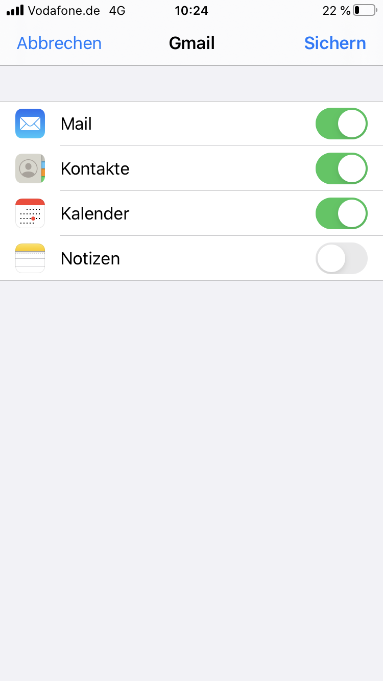 Für Anbieter wie beispielsweise Google können Sie dann festlegen, ob nur Mail oder auch Kontakte, Kalender oder Notizen übernommen werden sollen.