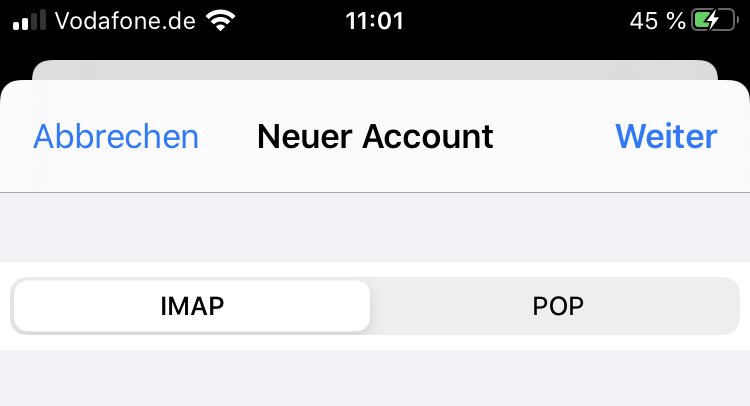 In der Einrichtung des Mailaccounts müssen Sie sich festlegen, ob Sie POP oder IMAP verwenden, indem Sie auf eine der beiden Schaltflächen bei Einrichtung eines neuen Accounts drücken.