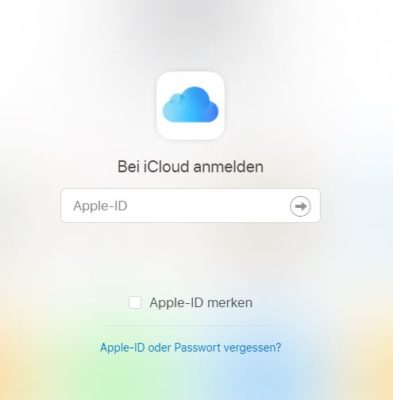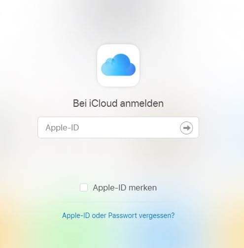 - Öffnen Sie die Seite icloud.com über einen Browser und melden Sie sich dort mit Ihrer Apple-ID an.