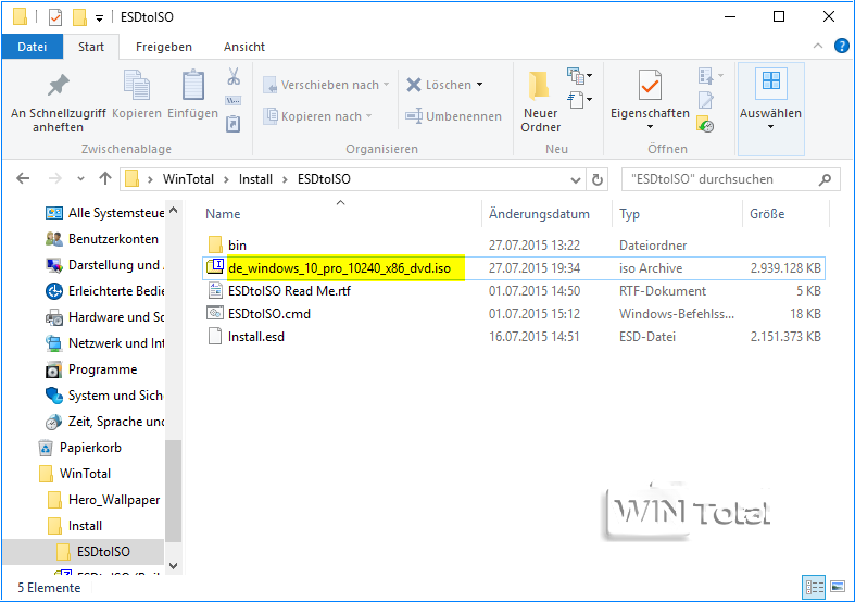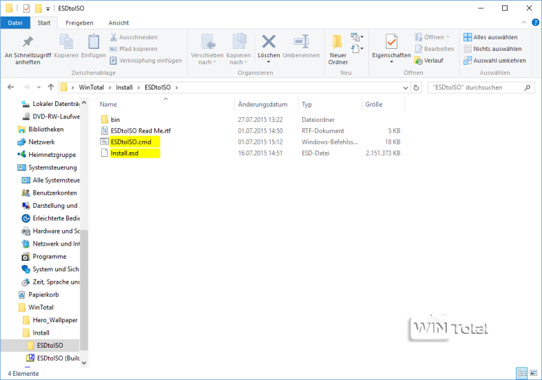 Die „install.esd“ kopieren Sie in den Ordner ESDtoISO, wo auch die Datei ESDtoISO.cmd liegt.