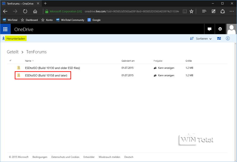 Das Skript ESDtoISO (Build 10158 and later), das von Windows 10 Forums bereitgestellt wird, laden Sie sich in einen extra dafür angelegten Ordner herunter. Nach dem Entpacken wird ein neuer Ordner ESDtoISO sichtbar.