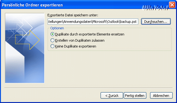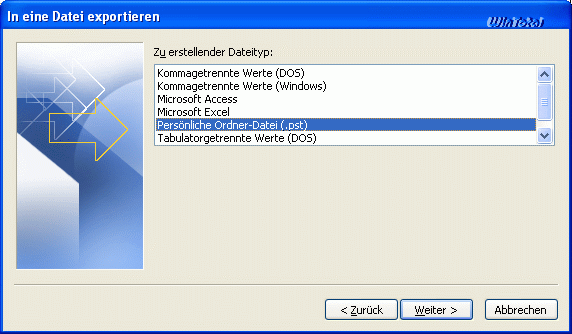 Dateityp Persönliche Ordner-Datei (.pst) auswählen