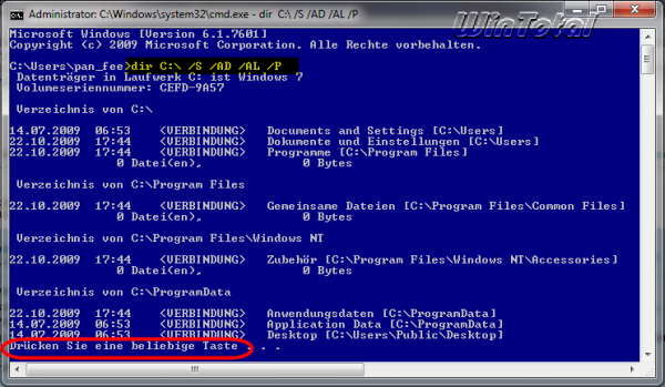 Hier eine Aufstellung von Verknüpfungen und Hardlinks in Vista: