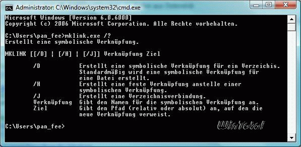 Wer symbolische Verknüpfungen (SymLink) selbst für eigene Zwecke erzeugen möchte, kann das mit dem mitgelieferten Programm mklink, das eine symbolische Verknüpfung erstellt.