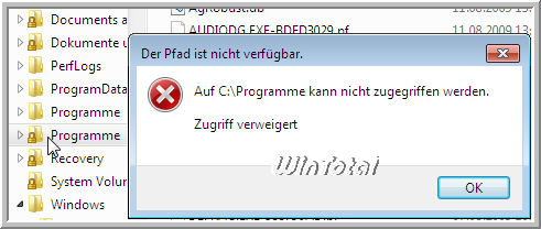 - https://www.wintotal.de/tipparchiv/?id=1685 (Microsoft Fix It Sammlung: Auf C:Programme kann nicht zugegriffen werden, wenn ...)