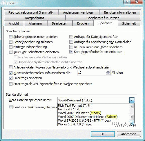 Neu hinzugekommen: *.docx und *.docm
