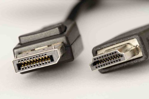 DisplayPort (links) ist nur elektrisch zu HDMI kompatibel, benötigt daher ein Adapterkabel.
