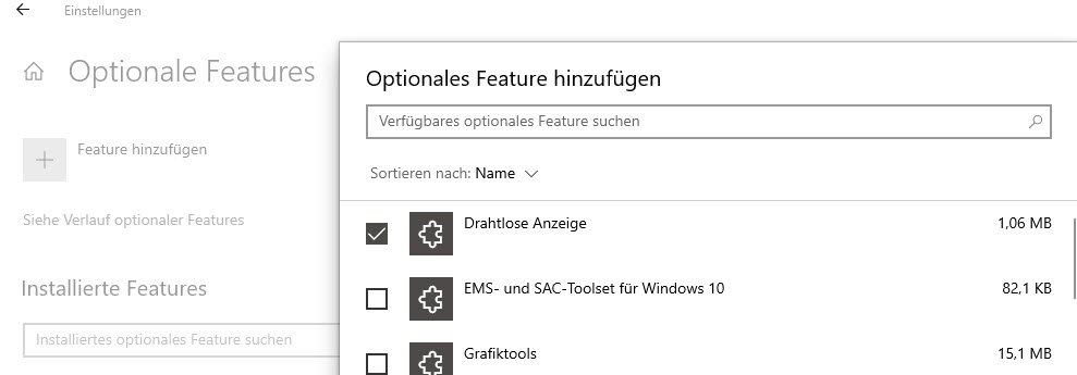 Drahtlose Anzeige „Miracast“ nachinstallieren