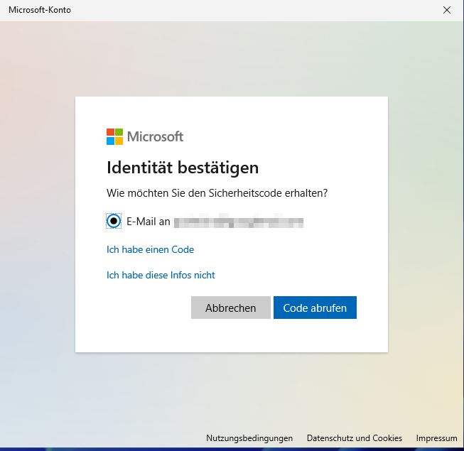 Wenn Sie statt einer PIN nur das Microsoft-Kennwort verwenden, dieses aber vergessen haben, klicken Sie auf den Textlink „Kennwort vergessen?“ unter dem Eingabefeld. Sie müssen dann die Identität bestätigen und bekommen einen Sicherheitscode an Ihre Mailanschrift.