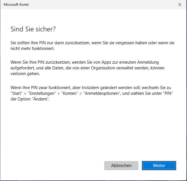 2.1. Das Microsoft-Konto oder die PIN zurücksetzen