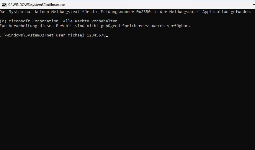 Auf dem Anmeldebildschirm drücken Sie dann die Tastenkombination Windows+U. Normalerweise startet hier der „Utilman“, welcher die erleichterte Bedienung von Windows ermöglicht. Durch unsere Befehle öffnet sich jetzt aber die Eingabeaufforderung von Windows.