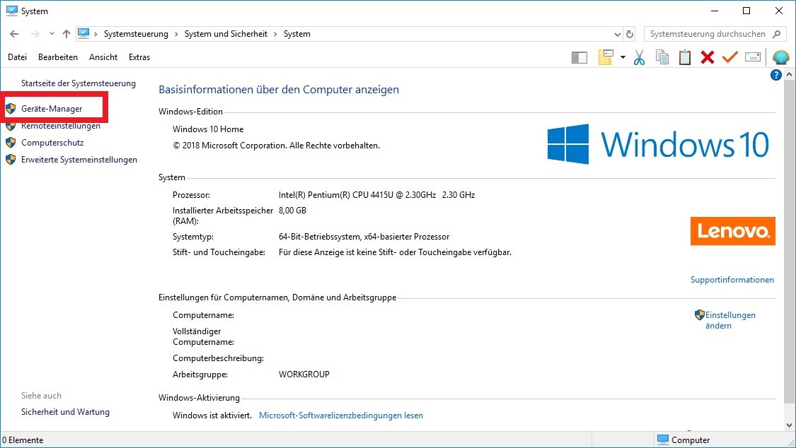 - Öffnen Sie die Systemsteuerung und klicken Sie unter „System und Sicherheit -> System“ auf den „Geräte-Manager“.