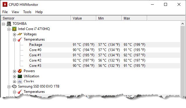 Nicht alle Laptops zeigen die Lüfterdrehzahl an: Je nach Hersteller ist unter Umständen keine Möglichkeit vorgesehen, die Drehzahl der Lüfter auszulesen. In diesem Fall können Sie sich nur die Temperatur der CPU und anderer Komponenten anzeigen lassen.