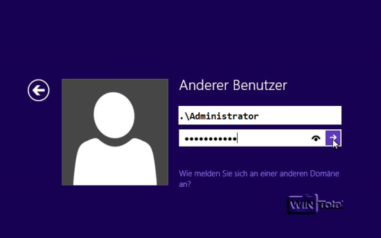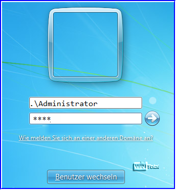 Wer als Administrator oder lokaler Nutzer sich nicht in der Domäne, sondern über einen lokalen Account anmelden möchte, muss in das Benutzernamensfeld normalerweise den PC-Namen, dann einen Backslash (\) und den Accountnamen eingeben, also z.B.: P1023\Administrator.