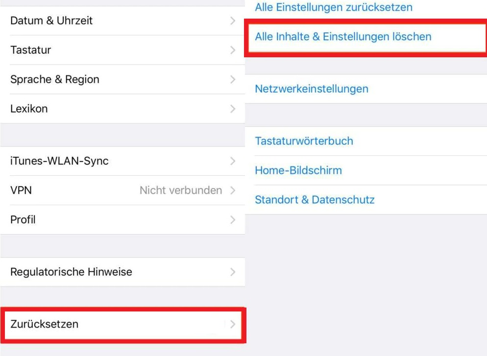 Um ihr Smartphone in iOS zurückzusetzen, gehen Sie folgendermaßen vor:
