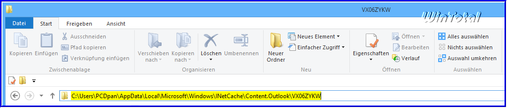 Verlassen Sie das Dialogfenster mit einem Klick auf [Abbrechen] und schließen Sie danach den Registrierungseditor. Starten Sie den Windows-Explorer und setzen Sie den Cursor in die Adresszeile, löschen Sie den aktuellen Inhalt und mit [Strg]+[v] fügen Sie die Pfadangabe zum Outlook-Ordner für temporäre Dateien aus der Zwischenablage ein. Ein Druck auf die Taste [Enter] bringt Sie direkt in den entsprechenden Ordner.