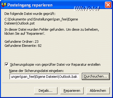 Ein Klick auf den Button „Reparieren“ und die kopierte PST-Datei ist wiederhergestellt.