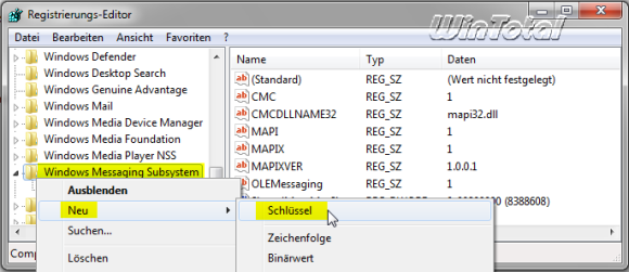Fehlt der Unterschlüssel Applications, legen Sie ihn über „Neu“ – „Schlüssel“ an.
