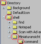 ein neuer Unterschlüssel Miniaturansicht angelegt, über Rechtsklick – Neu – neuer Schlüssel. Nochmals einen Rechtsklick auf den neu erstellten Unterschlüssel „Miniaturansicht“ – Neu – neuer Schlüssel, diesmal mit dem Namen command.