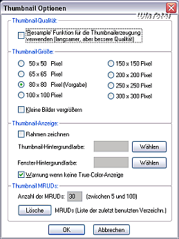 Mit einem Klick auf diese neue Option öffnet sich der IrfanView-Thumbnail und im Menü Optionen – „Thumbnail-Optionen ändern“ können diverse Einstellungen noch vorgenommen werden.