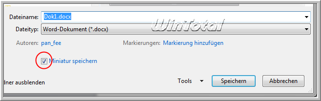 Sie können vor dem Speichern eines Dokuments auch das Häkchen setzen vor Miniatur speichern.