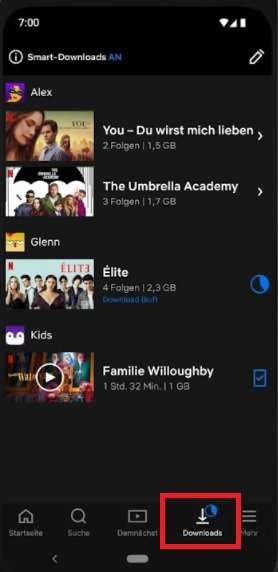 Die heruntergeladenen Serien und Filme sind nur auf dem Gerät verfügbar, auf dem der Download durchgeführt wurde. Sie können aber über jedes Profil in Ihrem Konto angesehen werden. Wenn Sie Ihr Netflix-Konto kündigen, werden automatisch auch alle heruntergeladenen Titel gelöscht. Bei einer späteren Reaktivierung Ihres Kontos müssen Sie diese erneut herunterladen.