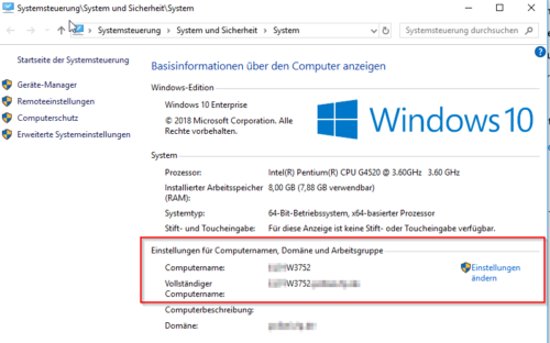 Wo findet sich der Computername?: Den Freigabenamen eines PCs finden Sie in der klassischen Sysmsteuerung unter „System“, wo die Bezeichnung des PCs im Feld Computername auch geändert werden kann.