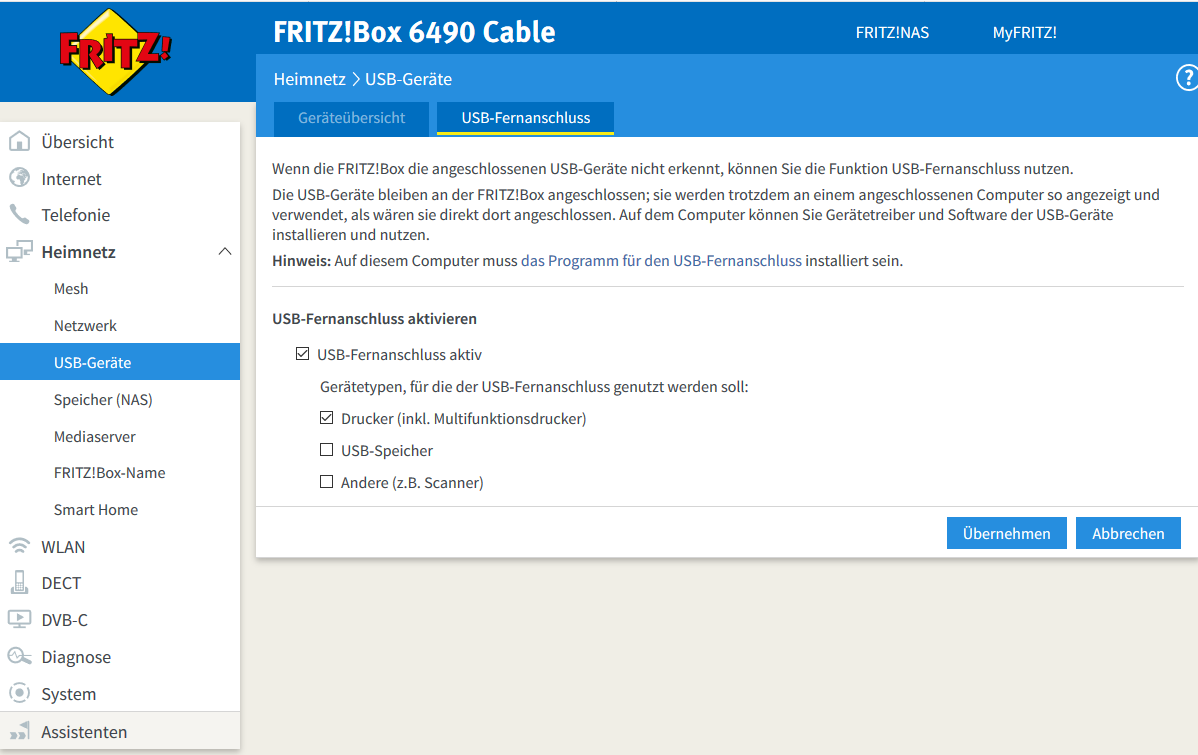 AVM bietet daher mit dem USB-Fernanschluss eine weitere Möglichkeit, um auch nicht kompatible Drucker und sogar Multifunktionsgeräte über den USB-Anschluss an der FRITZ!Box im Netzwerk zu nutzen.