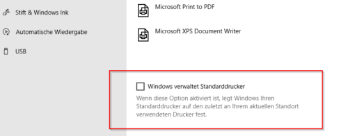 Windows kann aber auch den Standarddrucker verwalten. Sie können unter „Drucker und Scanner“ die Option dafür aktivieren.