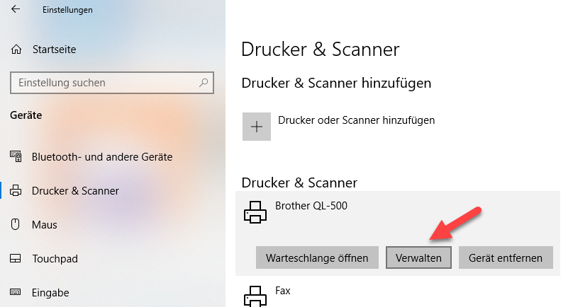 Drucker in Windows 10 verwaltenDruckereigenschaften in Windows 10 aufrufen