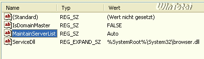 Reg_SZ = Auto (der erste verfügbare Rechner wird der „Master Browser“)